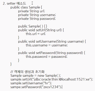 Sample sample = new Sample("jdbc:oracle:thin:@localhost:1521:xe","hr","zxcv1234");